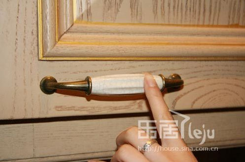 上面配的拉手都是可以选择的,象这款是作旧古铜风格的。